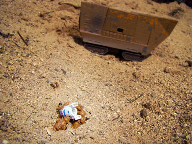Jawas carrying R2-D2 to their sandcrawler